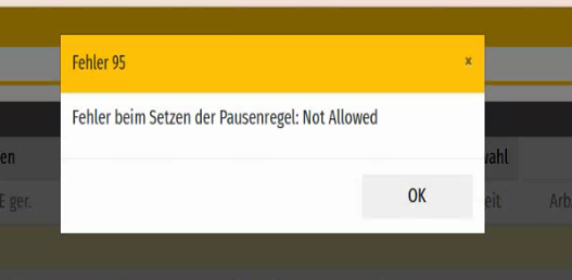 "Fehler beim setzen der Pausenregel. Not Allowed"